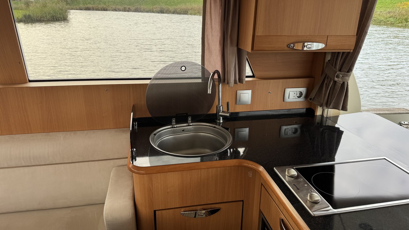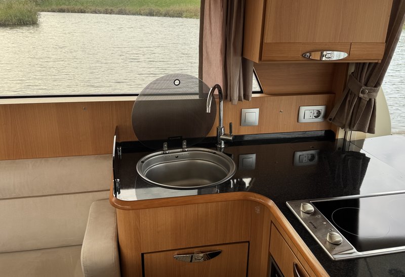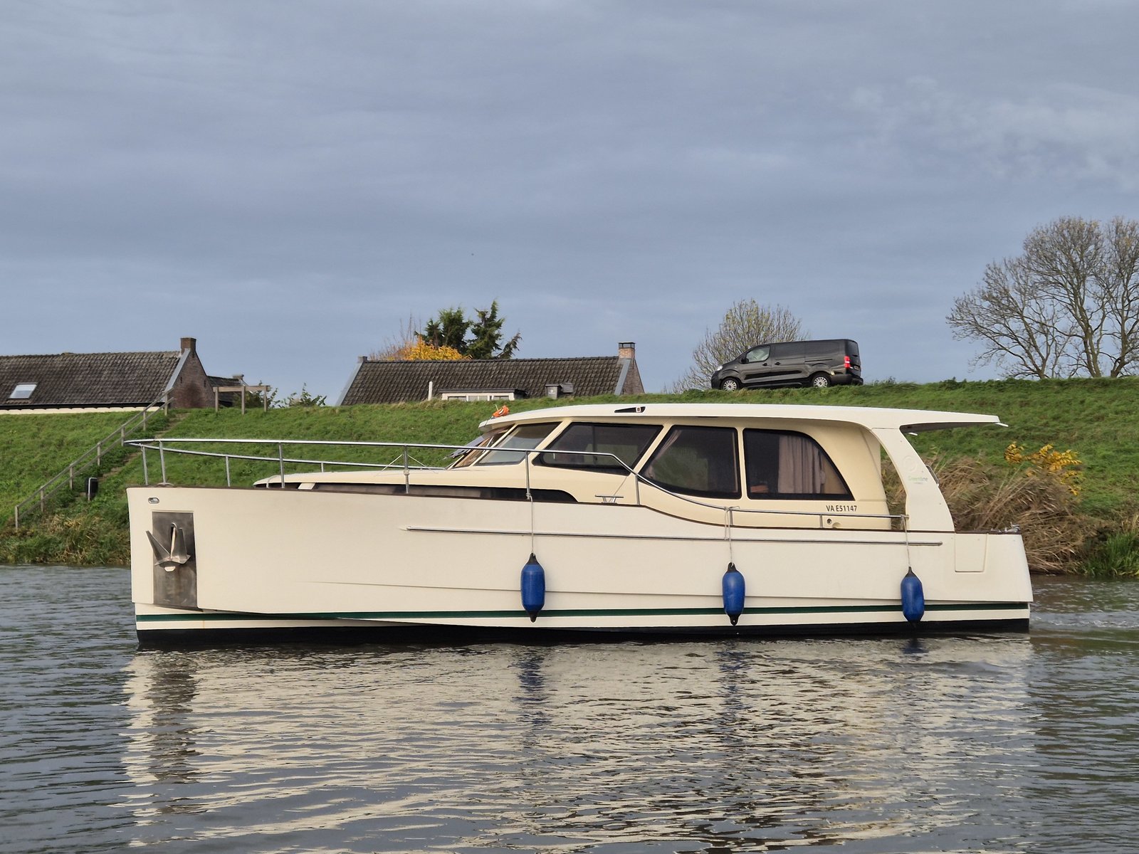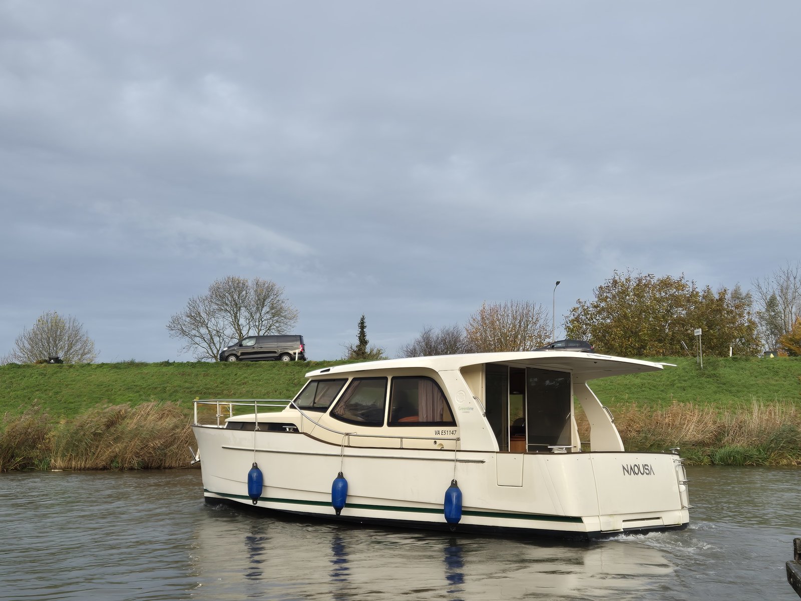 Motor Yacht “Naousa” Greenline 33 Discover the beauty of the Netherlands from the water aboard the Greenline 33 Naousa. This elegant and energy-efficient motor yacht can be rented without a boating license. Depart from Heukelum and explore the Green Heart of Holland, cruise through Utrecht, Gouda, and Leiden, or venture into the Biesbosch National Park and even Amsterdam. The Greenline 33 stands out with its clever design. The large folding kitchen window opens directly to the water, so you can cook while feeling outdoors. The fold-down bathing platform is perfect for a refreshing swim or simply relaxing by the stern. With bow and stern thrusters, manoeuvring is easy, even for beginners. Book your no license motor yacht today and experience pure freedom on the most beautiful waterways of the Netherlands.